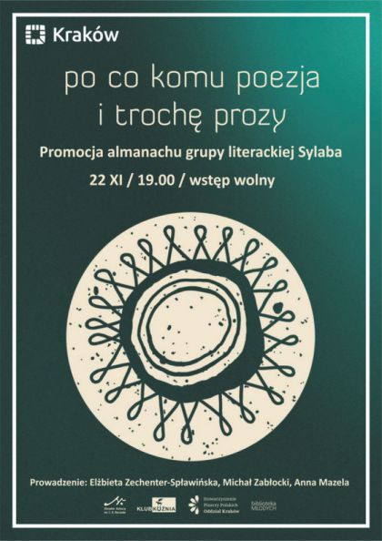 Spotkanie promujce Almanach "Po co komu poezja i troch prozy" wydany przez Stowarzyszenie Pisarzy Polskich Oddzia Krakw. Prowadzenie: Elbieta Zechenter-Spawiska, Micha Zabocki i Anna Mazela. Wstp wolny.
