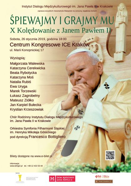 Instytut Dialogu Midzykulturowego im. Jana Pawa II w Krakowie ju po raz 10 zaprasza na wsplne koldowanie podczas koncertu piewajmy i grajmy Mu! X Koldowanie z Janem Pawem II, ktry odbdzie si 26 stycznia 2019 roku o godz. 18:00 w Centrum Kongresowym ICE Krakw.
