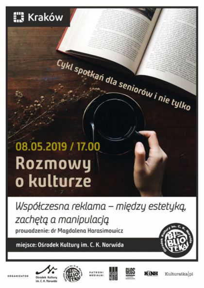 Cho o kulturze powiedziano ju wiele, refleksja nad ni jest wci aktualna. Biblioteka Orodka Kultury im. C. K. Norwida zaprasza wszystkich chtnych do dyskusji nad szeroko pojt kultur oraz zdarzeniami, ktre wpyny na bieg historii, a ktrych lady s nadal widoczne. Spotkania bd odbywa si cyklicznie w pierwsze rody miesica o godzinie 17.00 i bd miay charakter rozmowy kierowanej, podczas ktrej uczestnicy dowiedz si ciekawych faktw, a take bd mogli przy herbacie podzieli si swoimi spostrzeeniami na temat biecego zagadnienia. Mimo i spotkania organizowane s gwnie z myl o seniorach, mile widziane bd take osoby dorose w rnym wieku. Jak bowiem stwierdzi Benjamin Franklin: nie starzeje si ten, kto nie ma na to czasu.