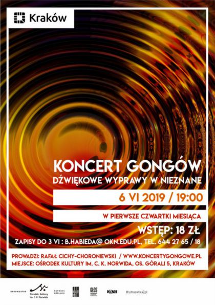 Relaks dla ciaa i rado dla duszy to w jednym zdaniu cel udziau w koncercie gongowym. Wraenia dostarczane suchaczom przez dwiki gongu s jedyne w swoim rodzaju, niepowtarzalne i nieporwnywalne z niczym innym. Prowadzi Rafa Cichy-Choroniewski / www.koncertygongowe.pl.