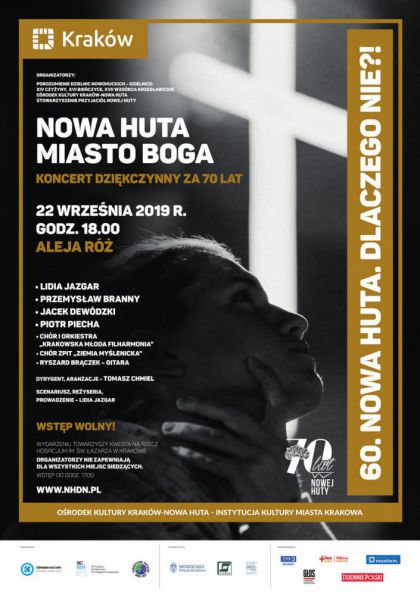 "Czowiek to ciao i dusza. I duch. adne zarzdzenie tego nie zmieni. A e dla Boga nie ma nic niemoliwego dzi w Nowej Hucie jest kilkanacie kociow i tysice wiernych. Tak to si inaczej potoczyo. Ale atwo nie byo. 70 lat historii tej dzielnicy Krakowa to take 70 lat walki o Krzy, walki o Koci i kocioy, walki o wolno. Take wolno serca." mwi Lidia Jazgar, dyrektor artystyczna cyklu Nowa Huta. Dlaczego Nie?! i jedna z ponad stu artystw, ktrzy wystpi w koncercie, zatytuowanym NOWA HUTA MIASTO BOGA.