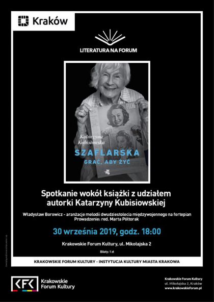 Krakowskie Forum Kultury zaprasza na spotkanie wokół książki „Szaflarska. Grać, aby żyć” z udziałem autorki Katarzyny Kubisiowskiej oraz Władysława Borowicza, które odbędzie się 30.09 o godz. 18:00.