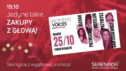 Ju w najblisz sobot 19 padziernika, klienci Serenady bd mieli okazj wzi udzia wwyjtkowej akcji promocyjnej. Po zakupach i okazaniu paragonw na minimum 400 z bd mogli odebra upominek podwjny bilety na wyjtkowy koncert trasy Womans Voices w Krakowie. Bilety owartoci 170 z (dla dwch osb) to idealna okazja, aby przey niecodzienne, muzyczne emocje wtowarzystwie wybitnych, polskich artystek.
