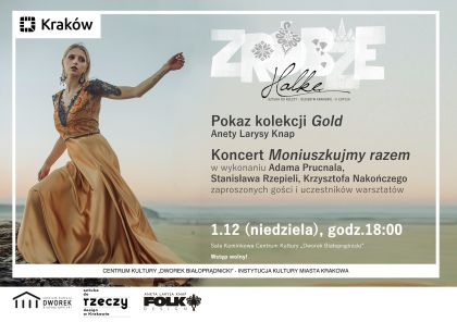 Finaem caego projektu "Zrbe halk" realizowanego w ramach Sztuka do rzeczy - design w Krakowie bdzie koncert - widowisko, prezentujcy dokonania i efekty wsppracy muzykw oraz uczestnikw warsztatw Moniuszkujmy razem pod kierunkiem Adama Prucnala i Stanisawa Rzepieli. Koncert bdzie poczony z pokazem elementw strojw wykonanych przez odbiorcw pozostaych dziaa oraz pokazem kolekcji "GOLD" projektantki Anety Larysy Knap, producentki i organizatorki najwikszego pokazu mody folk w kraju o nazwie POLKI FOLKI, prekursorki poczenia tradycji z nowoczesnoci w brany odzieowej, ktra zajmuje si tworzeniem nowatorskiego stylu bazujcego na dotychczasowych kanonach emblematw gralskiego folkloru, scalenia w jedno codziennoci i funkcjonalnoci z nieskazitelnym charakterem rejonu Podhala, wacicielki ekologicznej marki FOLK DESIGN.