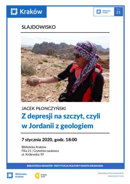 Geolog, kartograf, przewodnik tatrzaski i midzynarodowy przewodnik grski, podrnik, prezes Krakowskiego Klubu Przodownikw Turystyki Grskiej PTTK. Zajmuje si animacj kultury turystyki grskiej, popularyzuje gry i podrowanie, prowadzc prelekcje oraz prezentujc fotorelacje z podry. Regularnie organizuje Spotkania z grami w Wojskowym Orodku Kultury w Krakowie. Publikuje rwnie artykuy o tematyce grskiej w czasopimie Makowa Per. Podczas spotkania Jacek Ponczyski opowie o Jordanii oraz zaprezentuje zdjcia i podzieli si wraeniami z wasnej podry do tego kraju.