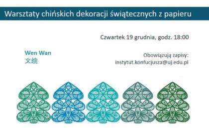 Instytut Konfucjusza w Krakowie serdecznie zaprasza wszystkich w czwartek 19 grudnia o godz. 18:00 na warsztaty chiskich dekoracji witecznych z papieru.