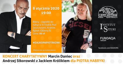 Po raz kolejny dajemy kopa Piotrowi Habryce! Przyjaciele Piotra zapraszają na koncert charytatywny, na którym wystąpią Marcin Daniec oraz Andrzej Sikorowski w towarzystwie Jacka Królika. Spotkamy się w krakowskim Klubie pod Jaszczurami już 8 stycznia, o 19:00.