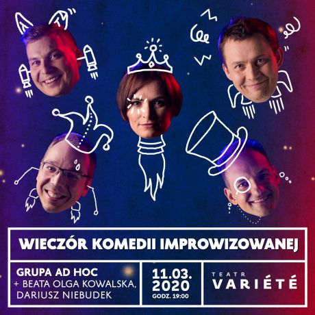Wieczr Komedii Improwizowanej to spektakl autorstwa Grupy AD HOC, ktry skada si z kilkunastu skeczy tworzonych na oczach widzw. Tutaj nie ma wczeniej ustalonego scenariusza. To widzowie decyduj o najwaniejszych kwestiach.