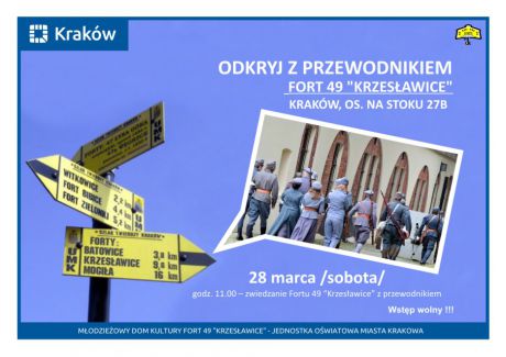 Fort 49 Krzesawice zaprasza na zwiedzanie dawnej czci Twierdzy Krakw oraz do obejrzenia miejsc na co dzie niedostpnych dla goci koszar, schronw i podziemnych korytarzy. Po Forcie 49 Krzesawice oprowadzi Dyrektor MDK Franciszek Dziado.