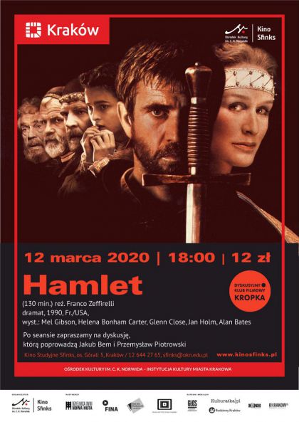 Dyskusyjny Klub Filmowy Kropka zaprasza na film Hamlet w reyserii Franco Zeffirelliego. Po seansie odbdzie si dyskusja, ktr poprowadz Jakub Bem i Przemysaw Piotrowski. Wstp: 12 z.