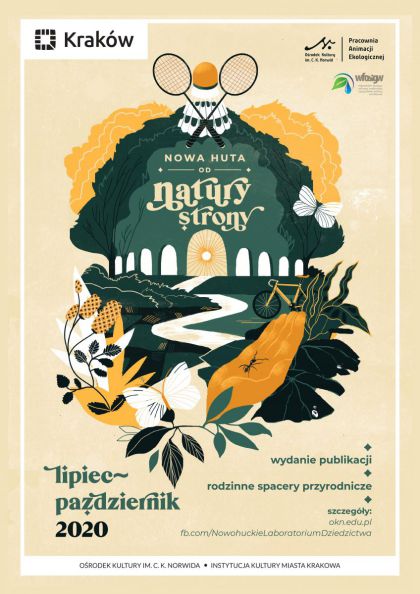 Nowa Huta od NATURY strony - projekt z zakresu edukacji ekologicznej w obszarze dziedzictwa przyrodniczego najbardziej zielonej czci Krakowa, organizowany przez Pracowni Animacji Ekologicznej dziaajc w ramach Nowohuckiego Laboratorium Dziedzictwa Orodka Kultury im. C. K. Norwida. Zakada organizacj weekendowych rodzinnych spacerw poznawczo-badawczych organizowanych dla mieszkacw Nowej Huty i Krakowa. W okresie od lipca do padziernika 2020 r. odbd si 4 spacery tematyczne po kach Nowohuckich oraz 7 wypraw szlakami przyrodniczymi dzielnicy, podczas ktrych prezentowane bd wszystkie formy zieleni miejskiej (uytki ekologiczne, nieuytki, ziele parkowa i forteczna, ogrdki dziakowe, ziele podwrek i osiedli - w tym pomniki przyrody i parki kieszonkowe, ziele cigw rzecznych, lasy miejskie). Na zakoczenie projektu powstanie publikacja elektroniczna, ktra opisywa bdzie miejsce kadej z wypraw wraz z krtk charakterystyk innych podobnych w Nowej Hucie. Dofinansowano ze rodkw Wojewdzkiego Funduszu Ochrony rodowiska i Gospodarki Wodnej w Krakowie.