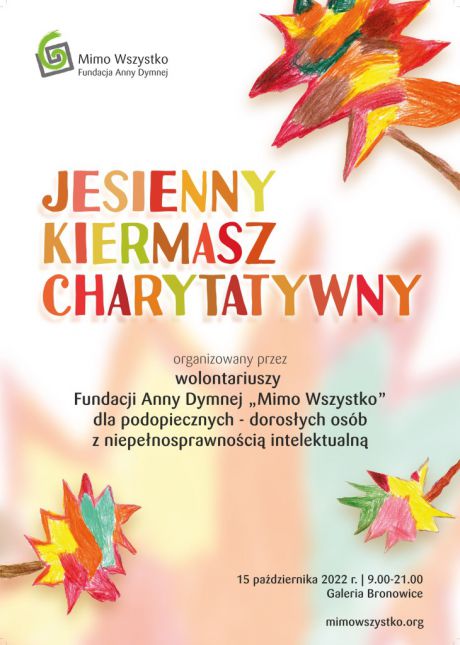 Jesienny Kiermasz Charytatywny odbędzie się w najbliższą sobotę – 15 października. W tym dniu będzie można wesprzeć podopiecznych fundacji w ramach zbiórki publicznej o numerze 2022/3419/OR, a także bezgotówkowo, za pomocą datkomatów Donateo.