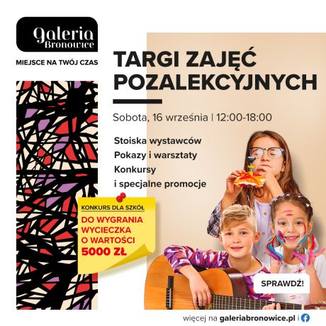 Targi Zajęć Pozalekcyjnych odbędą się 16 września, w godz. 12:00-18:00, w Galerii Bronowice na poziomie 0. Wstęp wolny.