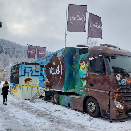 Wizyta w magicznym wnętrzu Wawel Trucka to fascynujące przeżycie! Każde dziecko może spróbować swoich sił w animowanych grach zręcznościowych. Dzięki specjalnym okularom VR najmłodsi mogą przeżyć niezapomnianą przejażdżkę wirtualnym rollercoasterem po fabryce czekolady, gdzie poznają największe tajniki jej produkcji. Dowiedzą się również więcej o dobrych składnikach zawartych w słodyczach z Wawelu. Towarzyszami radosnych gier i zabaw będą Michałki, czyli postacie nawiązujące do kultowego produktu marki. Każdy odwiedzający tę niezwykłą ciężarówkę może zrobić sobie z nimi zdjęcie, a następnie wysłać na swój adres e-mail.