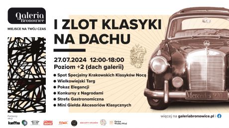 Świetna wiadomość dla miłośników motoryzacji i dobrej kuchni! Na dachu Galerii Bronowice zorganizowany zostanie I Zlot Klasyki. Na uczestników czekać będzie nawet kilkaset zabytkowych samochodów, pokaz elegancji, strefa gastronomiczna, Targ Wielkowiejski oraz wiele innych atrakcji. Wydarzenie odbędzie się 27 lipca, w godz. 12:00-18:00. Wstęp wolny.