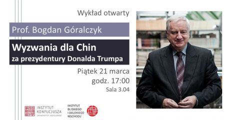 Ośrodek „Instytut Konfucjusza w Krakowie” serdecznie zaprasza w piątek 21 marca o godz. 17:00 na otwarty wykład prof. Bogdana Góralczyka pt. „Wyzwania dla Chin za prezydentury Donalda Trumpa”.