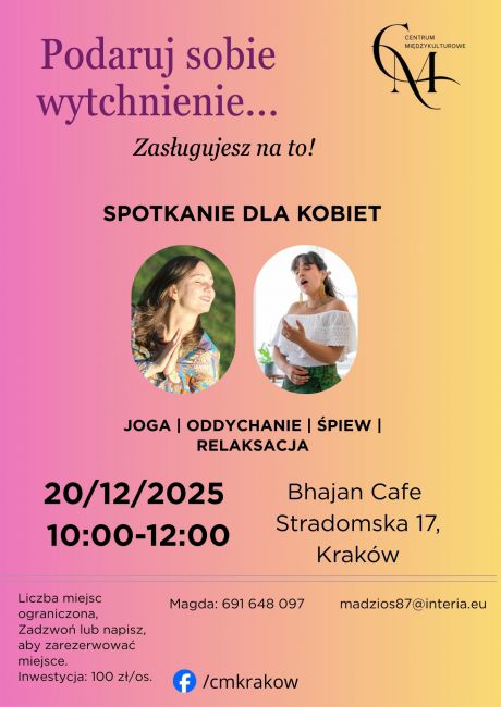 Zajęcia odbędą się w kameralnej przestrzeni, co pozwoli na indywidualne podejście do uczestniczek. Liczba miejsc jest ograniczona.