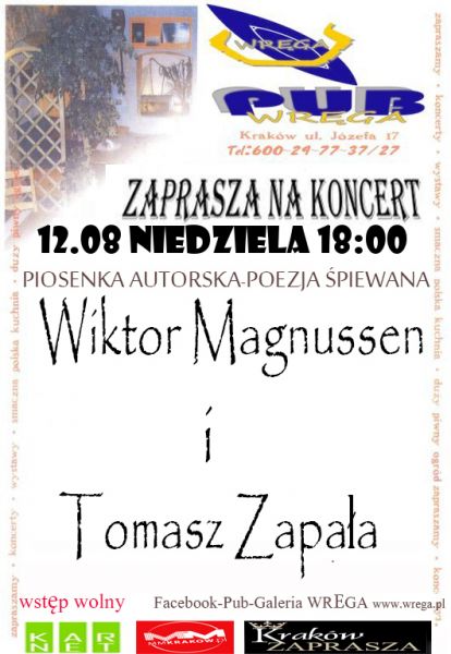 Victor Magnussen i Tomasz Zapaa wystpi w pitkowy wieczr w magicznym ogrdku piwnym na Kazimierzu. Usyszymy ballady po angielsku w wykonaniu gitarowym z elementami popu i rocka!