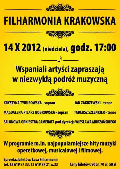 Występują: Krystyna Tyburowska, Magdalena Pilarz-Bobrowska, Jan Zakrzewski, Tadeusz Szlenkier oraz Salonowa Orkiestra Camerata pod dyr. Wiesława Murzańskiego; w programie najpopularniejsze hity muzyki operetkowej, musicalowej i i filmowej.
