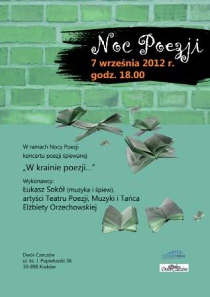W ramach II Krakowskiej Nocy Poezji w Dworze Czeczw odbdzie si koncert poezji piewanej pt. W krainie poezji