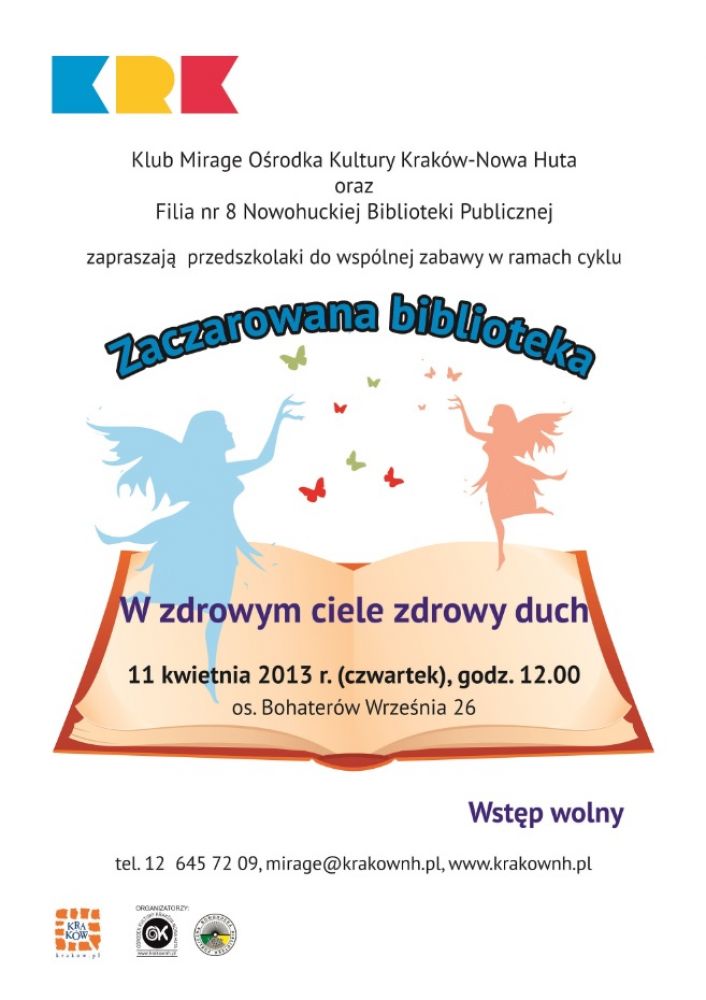 Klub Mirage Orodka Kultury Kraków-Nowa Huta (os. Bohaterów Wrzenia 26) zaprasza na kolejne zajęcia edukacyjno relaksacyjne dla przedszkolaków z cyklu Zaczarowana biblioteka.