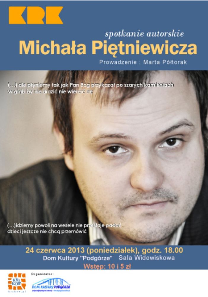 W Domu Kultury Podgórze odbędzie się spotkanie autorskie z poetš młodego pokolenia, pisarzem i redaktorem "Metefory" - Michałem Piętniewiczem. W programie przedstawione zostanš wiersze poety oraz fragmenty prozy poetyckiej.