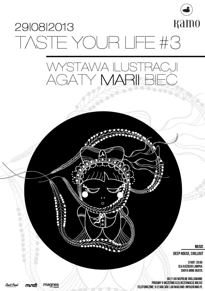 Kamo Bar & Grill zaprasza na kolejny wernisaż tym razem ilustracji autorstwa Agaty Marii Bieć oraz wspólne grillowanie, które odbędzie się w czwartek 29 sierpnia o godzinie 20:00 przy ul. Czystej 8 w Krakowie.