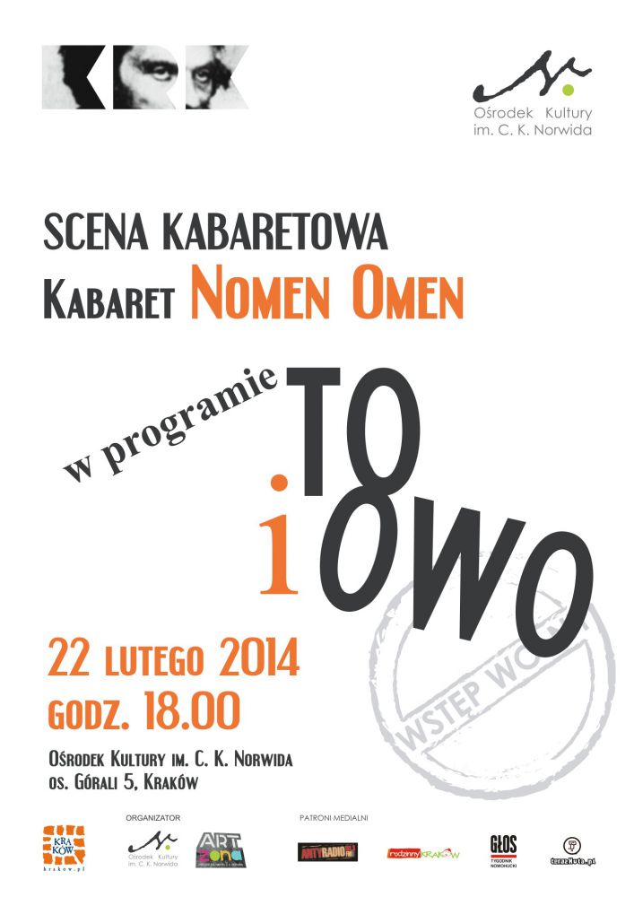 Serdecznie zapraszamy do Oœrodka Kultury im. C. K. Norwida na goœcinny występ kabaretu Nomen Omen.