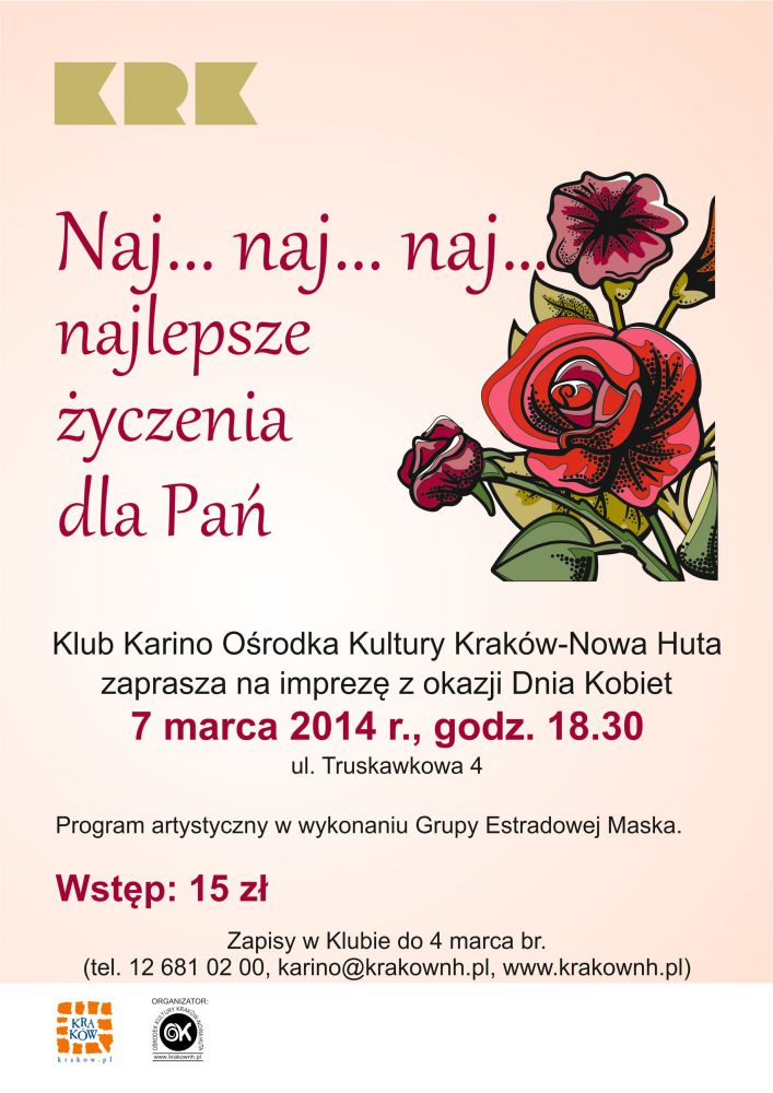Œwięto Kobiet to doskonała okazja do spędzenia tego niezwykłego dnia w wyjštkowy sposób. Klub Karino Oœrodka Kultury Kraków-Nowa Huta (ul. Truskawkowa 4) zaprasza 7 marca o godz. 18.30 mieszkanki Chałupek w każdym wieku na imprezę dedykowanš specjalnie im.
