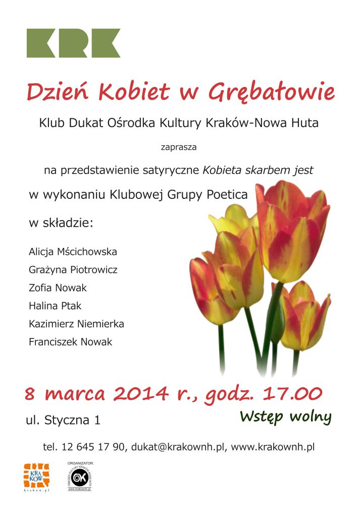 Klub Dukat Oœrodka Kultury Kraków-Nowa Huta (ul. Styczna 1) zaprasza 8 marca o godz. 17.00 na spotkanie z okazji œwięta Pań.