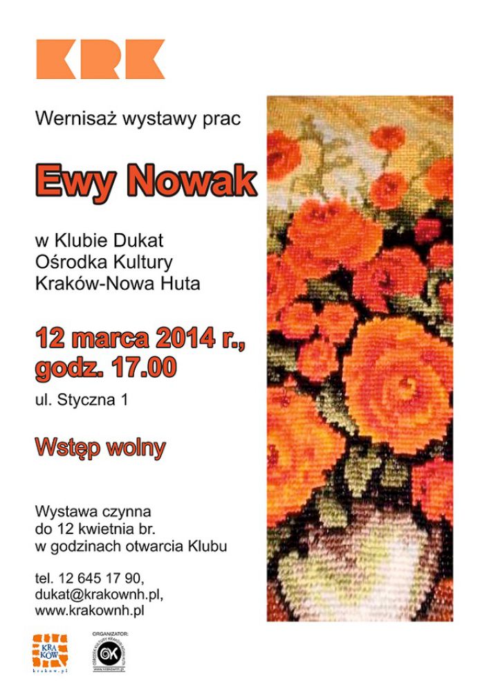 Otwarcie wystawy prac twórczyni ludowej Ewy Nowak w Klubie Dukat Oœrodka Kultury Kraków-Nowa Huta (ul. Styczna 1), które odbędzie się 12 marca o godz. 17.00.