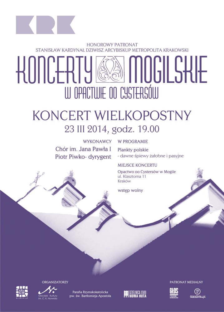 Z cyklu Koncerty Mogilskie zapraszamy na Koncert Wielkopostny do Bazyliki oo. Cystersów w Mogile.
