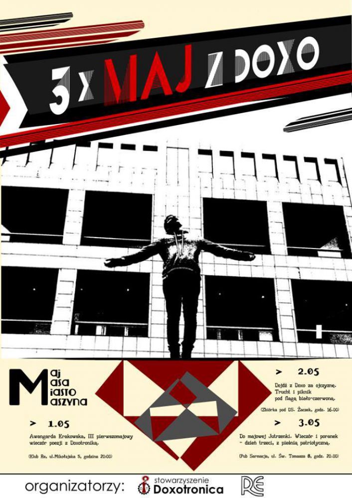 Stowarzyszenie DoxoTronica serdecznie zaprasza na swoisty majowy trójbój: 3XMAJ Z DOXO w ramach którego odbędzie się wieczór poezji