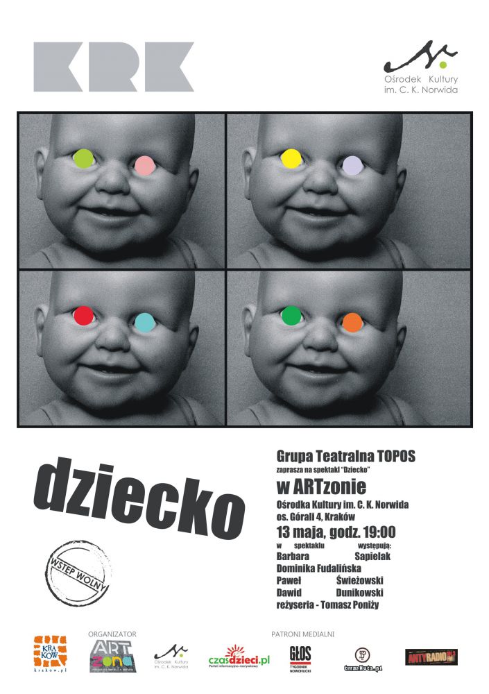 Serdecznie zapraszamy do ARTzony Oœrodka Kultury im. C. K. Norwida na pierwszy spektakl Grupy Teatralnej Topos pt. „DZIECKO”.