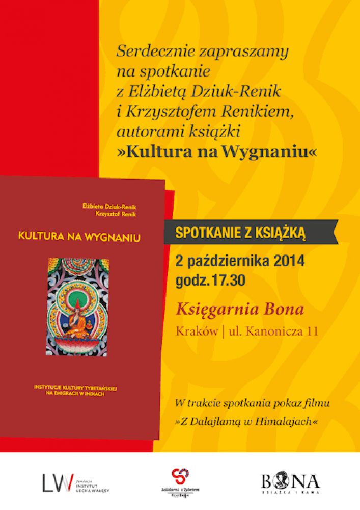 Dzięki uprzejmoœci Krzysztofa Renika i Elżbiety Dziuk-Renik, autorów ksišżki “Kultura na wygnaniu”, Instytut Lecha Wałęsy został wydawcš powyższej publikacji w ramach programu “Solidarni z Tybetem”. Jest to pierwsza w Polsce i jedna z nie wielu na œwiecie ksišżka poœwięcona ogromnej pracy Tybetańskiej diaspory w Indiach, której celem jest odbudowa instytucji kultury Tybetańskiej na uchodŸstwie.