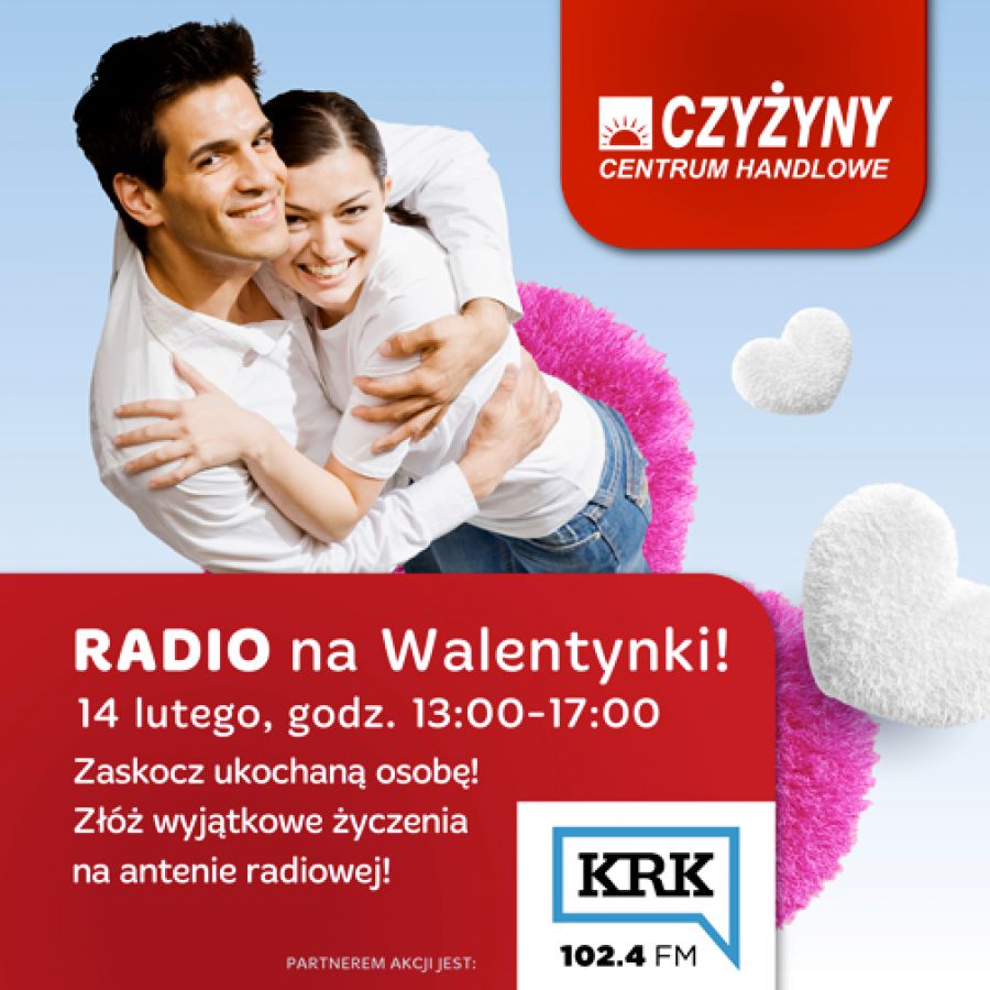 Na wszystkich zakochanych, z okazji ich więta, 14 lutego w Centrum Handlowym Czyżyny czekać będzie Walentynkowe Radio, za porednictwem którego będš oni mogli złożyć wyjštkowe życzenia bliskiej osobie.