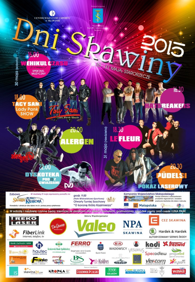 Muzyczne zatrzęsienie dwięków nastšpi w naszym miecie w ostatni weekend maja za sprawš zespołów, które zagoszczš na scenie podczas DNI SKAWINY 2015 na Starorzeczu Skawinki. W cišgu dwóch dni fani wielu gatunków muzycznych będš mogli przeżyć niezapomniane chwile bawišc się przy brzmieniach rocka, popu, soulu, rocknrolla, house i electro.