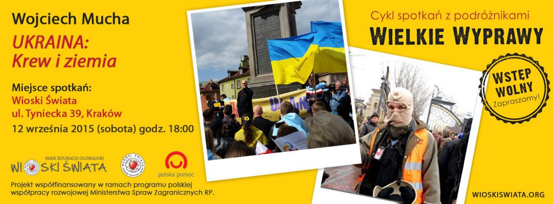 W najbliższš sobotę, tj. 12 wrzeœnia goœciem, w ramach cyklu spotkań „Wielkie Wyprawy”, będzie Wojciech Mucha – dziennikarz, publicysta i autor ksišżki „Krew i ziemia. O ukraińskiej rewolucji”, który przybliży nam obraz Ukrainy jaki sam miał okazję widzieć niejednokrotnie.