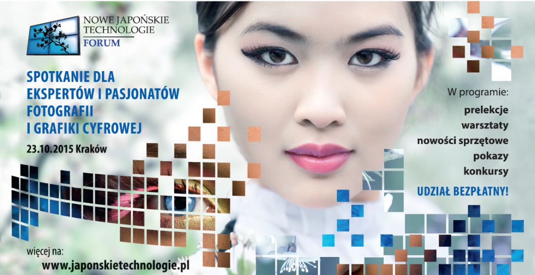 W Krakowie, 23 paŸdziernika 2015 br., odbędzie się po raz drugi Forum Nowych Japońskich Technologii, którego pomysłodawcš jest krakowska agencja Lucky Monday PR&Events. Tegoroczna edycja poœwięcona będzie m.in. takim zagadnieniom jak: postprodukcja w fotografii, animacja 3D, digital painting, czy obróbka cyfrowa. Wydarzenie zostało objęte patronatem Województwa Małopolskiego oraz Ambasady Japonii. Udział w Forum jest bezpłatny.
