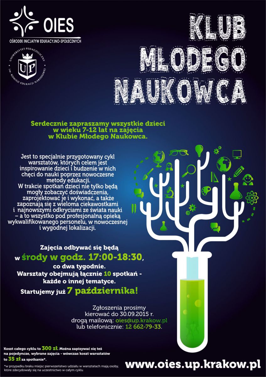 Serdecznie zapraszamy wszystkie dzieci w wieku 7-12 lat na zajęcia w Klubie Małego Naukowca.