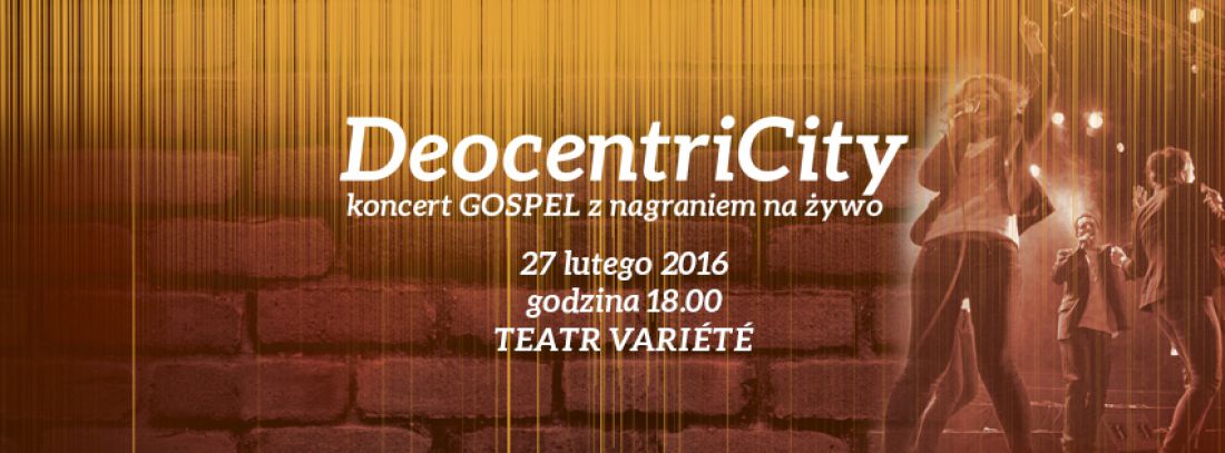 Już 27 lutego 2016 w Teatrze Variete odbędzie się wyjštkowy koncert grupy wokalnej DeocentriCity, œwiętujšcej niedawno 5 lat działalnoœci. Z materiału zarejestrowanego podczas tego wydarzenia powstanie debiutancka, wymarzona płyta zespołu. Jej wydanie zostanie sfinansowane ze zbiórki prowadzonej na platformy crowdfundingowej wspieram.to. Połowa œrodków zebranych podczas tej akcji zostanie przekazana na działalnoœć krakowskiej fundacji wspierajšcej ofiary handlu ludŸmi – You Can Free Us.