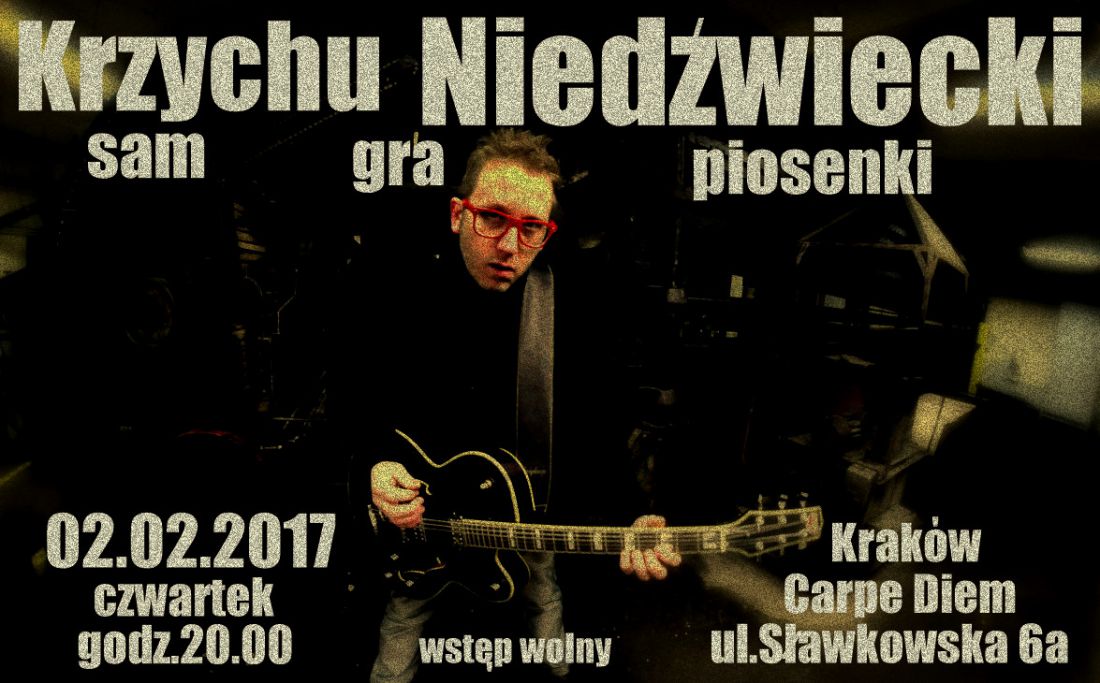 Zapraszamy na jednoosobowy koncert pt."KRZYCHU NIEDWIECKI - SAM GRA PIOSENKI" w ramach jego nowego programu z pogranicza rocka, piosenki autorskiej i muzyki improwizowanej.
