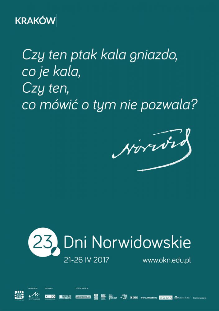 W dniach 21-26 kwietnia 2017 r. w Krakowie odbędš się 23. Dni Norwidowskie organizowane przez Orodek Kultury im. C. K. Norwida we współpracy z XII Liceum Ogólnokształcšcych im. C. K. Norwida. Festiwal ma na celu przybliżenie twórczoci tego wybitnego, wszechstronnego i ponadczasowego artysty - poety, prozaika, dramatopisarza, rzebiarza, malarza i rysownika. W przestrzeni miasta pojawiš się plakaty z cytatami norwidowskimi, odsyłajšce do znaczeń ważnych także dzi.