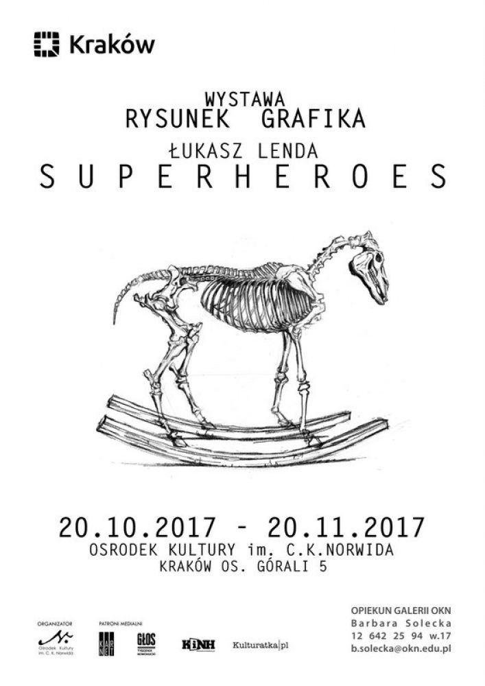 Wystawa rysunków i grafik Łukasza Lendy to cykl prac ilustrujšcych wszystkie utwory muzyczne z najnowszej płyty krakowskiego zespołu Wicked Heads pt. "Superheroes". Przedstawione na wystawie prace to połšczenie rysunków ołówkiem z grafikš cyfrowš. Wystawę będzie można oglšdać w Oœrodku Kultury im. C. K. Norwida do 20 listopada 2017 r.
