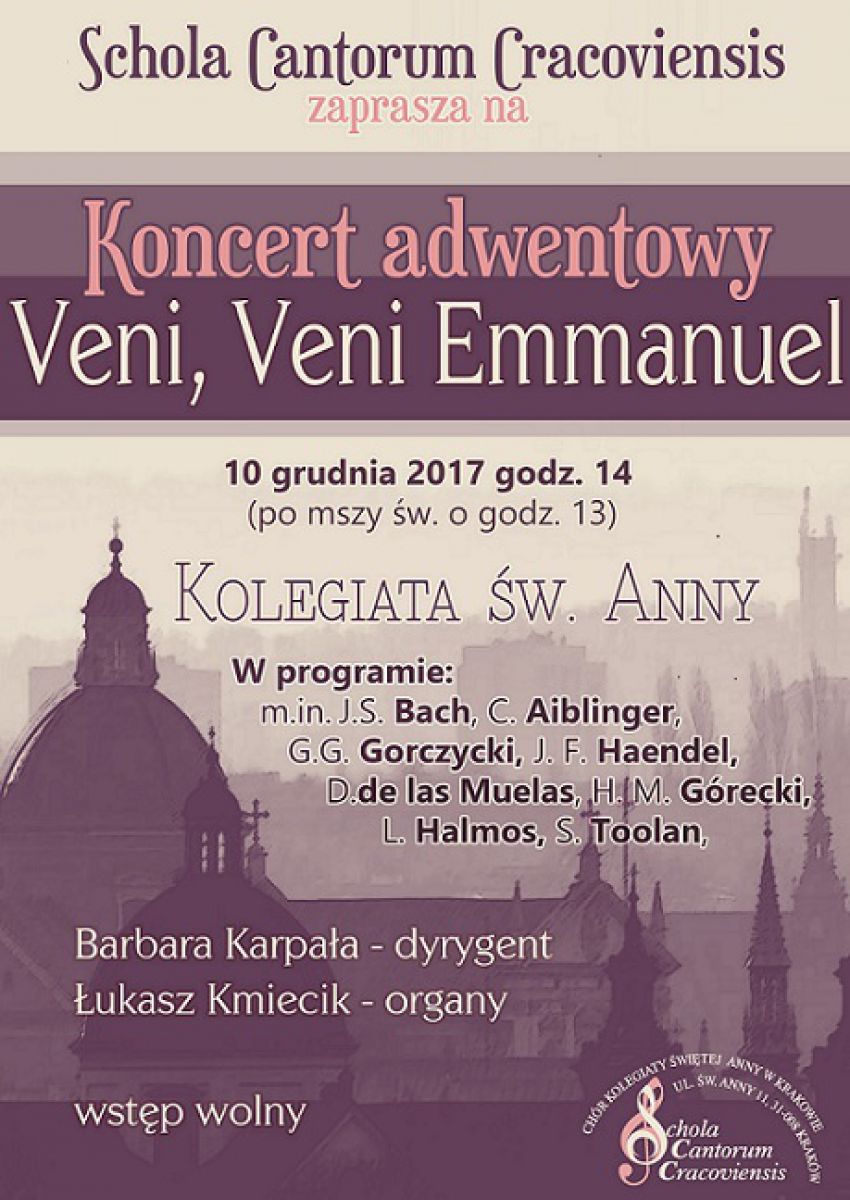 10 grudnia 2017 godz. 14 (po mszy w. o godz. 13) Kolegiata w.Anny
