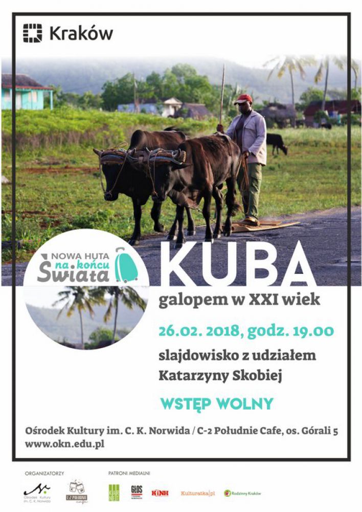 Kuba - wyspa jak wulkan goršca, nawet w porze deszczowej. Trochę wymarzona, trochę z przypadku. Podczas spotkania zobaczycie dużš częœć "must see" z przewodników. Przejdziemy się po ulicach Hawany, trochę powspinamy i przejedziemy konno w Viniales, ale to nie wszystko. Czeka was także spontaniczna wyprawa z miejscowym przewodnikiem, który zabierze nas w dzikš podróż "camionem" na wschodniš częœć Kuby, gdzie spędzimy parę dni z jego wspaniałš rodzinš. Pokaże nam też ukryty w dżungli wodospad i zaprowadzi do biblioteki w Moa. Wspomnę też ciut o historii i obecnej sytuacji oczami mieszkańców. Chcesz zobaczyć to na własne oczy i poczuć tropikalny klimat? PrzyjdŸ i dowiedz się więcej. Może będzie to dla Ciebie inspiracjš na własnš kubańskš przygodę.