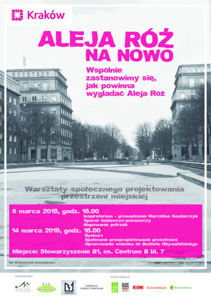 W tym dniu zaprezentowane zostanš rozwišzania dotyczšce wspólnych przestrzeni miejskich, stosowane obecnie w Polsce i na wiecie. Następnie podczas spaceru przyjrzymy się na nowo przestrzeni al. Róż i zastanowimy się, jak chcielibymy żeby wyglšdała i co z przedstawionych propozycji może znaleć zastosowanie w Nowej Hucie. Na koniec spróbujemy spisać nasze oczekiwania i propozycje.