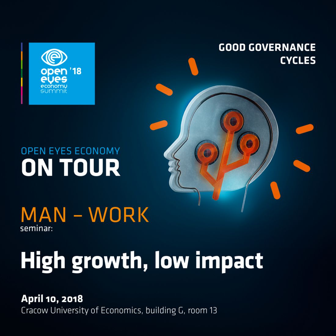 10 kwietnia Uniwersytet Ekonomiczny w Krakowie stanie się forum dyskusji na temat tego, czy da się wytwarzać więcej, zużywajšc mniej. Wszystko za sprawš seminarium pt. High growth, low impact ze specjalnym wykładem prof. Roberta Jessopa z Uniwersytetu w Lancaster. To już kolejne międzynarodowe wydarzenie w Krakowie realizowanie w ramach cyklu Open Eyes Economy on Tour, będšcego częciš Open Eyes Economy Summit 2018.