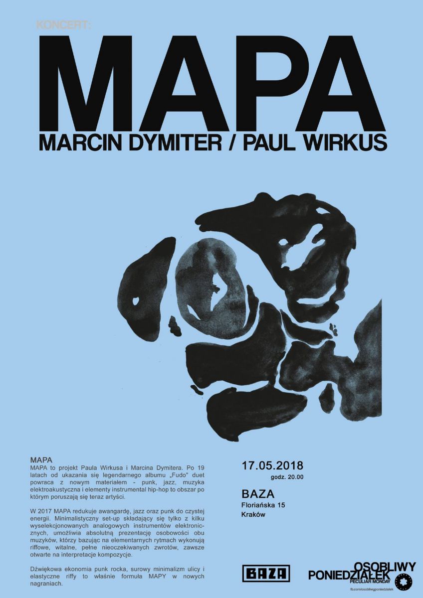MAPA to projekt Paula Wirkusa i Marcina Dymitera. Po 19 latach od ukazania się legendarnego albumu Fudo" duet powraca z nowym materiałem - punk, jazz, muzyka elektroakustyczna i elementy instrumental hip-hop to obszar po którym poruszajš się teraz artyci.