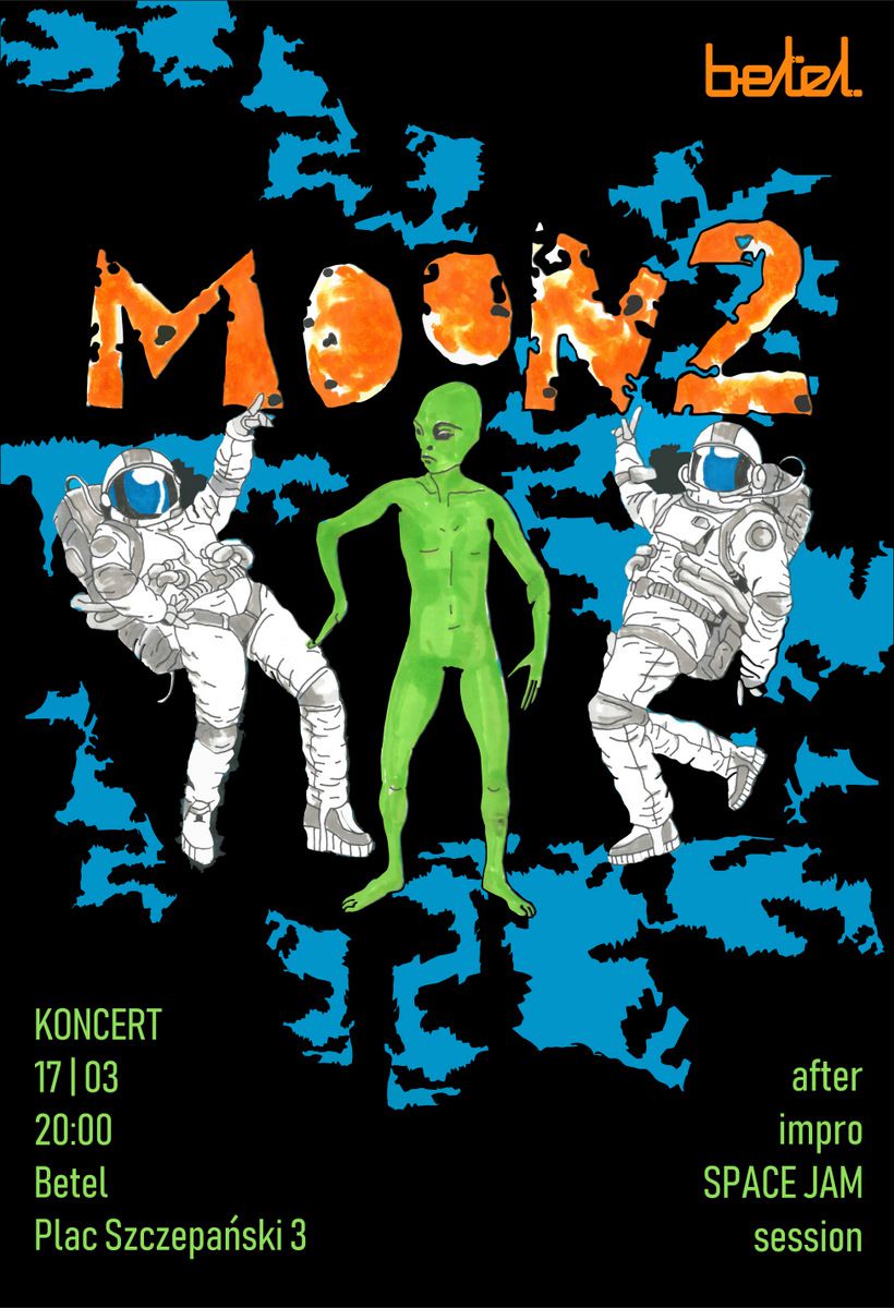 MOON2 to wirtualny wiat z uproszczonymi prawami fizycznymi. W wiecie tym dwięki stajš się obiektami, które podlegajš naturalnym prawom fizycznym, takim jak grawitacja czy podmuch wiatru. Każdy koncert zespołu to nie tylko doznanie dwiękowe, ale również intensywne dowiadczenie wizualne: gesty performera sš rejestrowane przy pomocy kamery i wpływajš na dwięki elektroniczne, zaprogramowane w języku SuperCollider. Gitara basowa oraz perkusja traktujš swoje partie zarówno jako harmoniczno-rytmicznš bazę, jak i sonorystycznš improwizację.